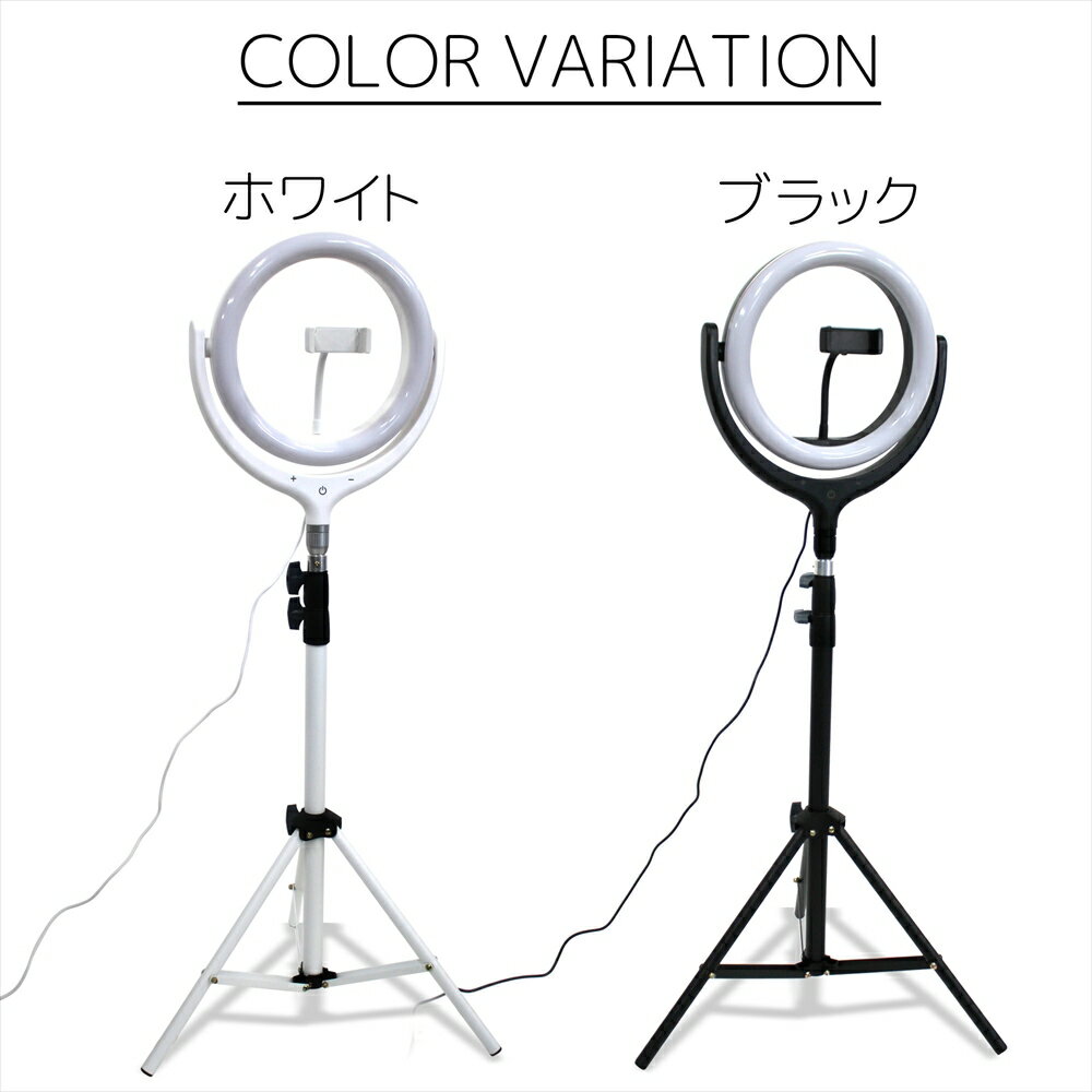 ■商品仕様サイズ:直径26cm(ライト部のみ)照明モード:3モード (昼白色/昼光色/電球色)調光機能:10段階LEDビーズ数:96個パワー:10W入力:DC5V/2AUSB給電式対応サイズ:幅5.5〜8.5cm■セット内容LEDリングライト×1170cmスタンド×1スマホホルダー×1【注意事項】・こちらの商品は宅配便でのお届けとなります。